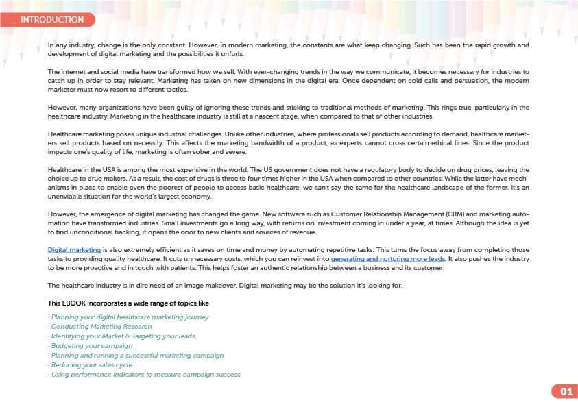 Digital marketing requires a different approach to be effective. This eBook is tell-all documentation of the healthcare industry from the perspective of a digital marketer. It also provides detailed information on digital marketing; past, present, and future. It also equips marketers with information on planning and executing the perfect digital marketing campaign.