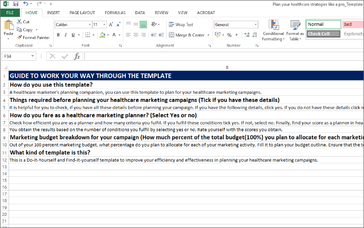 Our template offers a Do-it-Yourself planning section to plan your budget for healthcare campaigns. We have also provided you with a Measure-it-yourself section to find where you stand in planning.